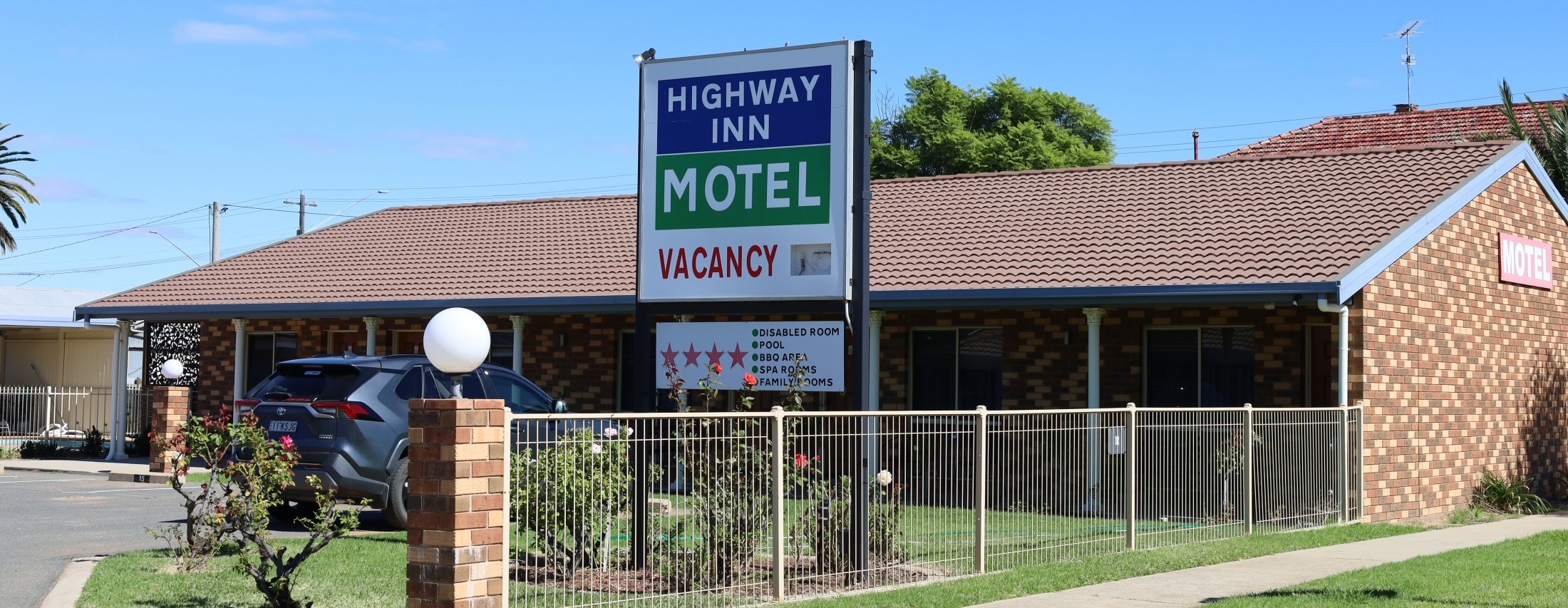 Located along the Mid-Western Highway in Hay, the Highway Inn Motel features an Outdoor Pool, Free WiFi, ample parking and 24-hour reception service. Spacious and accommodating rooms that will ensure your stay is as comfortable as if you were at home. The motel is adjacent to the Hay Bowling Club and a short walk to the Services Club. A 2-minute drive from Hay Jail Museum and a 5-minute drive from both Bishop’s Lodge Historic House & Heritage Rose Garden and Shear Outback. All rooms have reverse cycle air-conditioned and include flat-screen TV’s with huge selection of cable TV channels. An Airport shuttle service is also available.